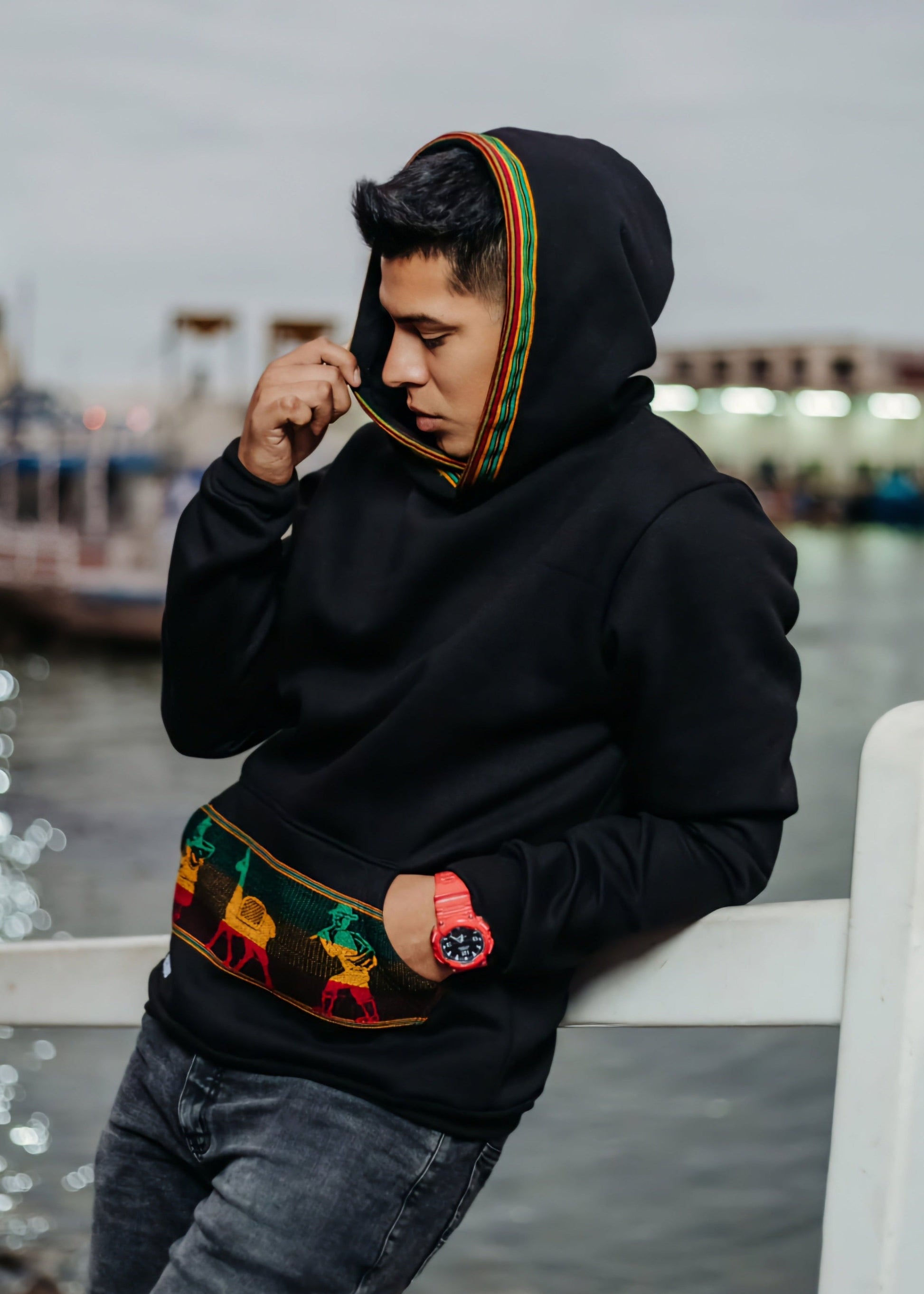 Polera Munaycha Color Negro Hombre con Capucha